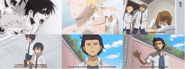 Podría ponerles como ejemplo decenas de situaciones diferentes, pero no me gustaría chafar la sorpresa a nadie. Aún así ilustro con un caso concreto. ¿Recuerdan la típica escena donde el protagonista es visto por otros compañeros suyos en compañía de una chica que suele ser su novia o alguien que le gusta? Pues aquí ocurre algo similar. Antes de nada, los chicos crean la impresión con sus comentarios de que verdaderamente está saliendo con la susodicha. En medio de ese malentendido, sus amigos y los demás intentan chafar la buena relación y envían al matón de clase. Al final, se descubre que no era más que una chica perdida que estaba guiando hacia la estación de bus.